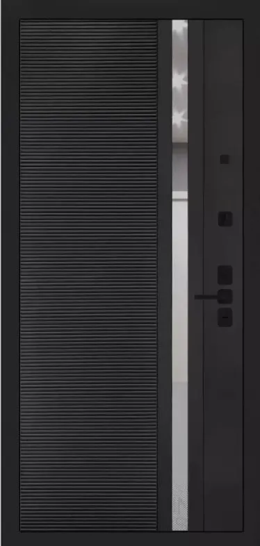 TOR XL черная: Врезная броненакладка, сувальдные накладки, ручка, ночная задвижка, цилиндр ключ-вертушка (производитель не регламентируется), глазок, эксцентрик.